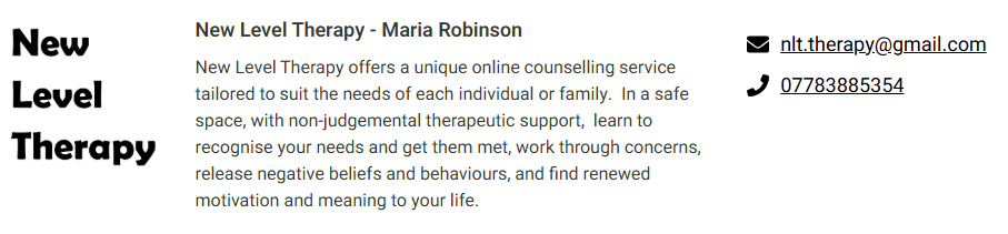 Sycamore Counselling Service is a local Charity offering a confidential and professional counselling service for adults, children and young people from throughout Warwickshire. They try and keep costs as low as possible and have a structured donation system in place according to ability to pay, which they will talk to you about when you engage with the service. You can visit their website at https://sycamorecounselling.org.uk/